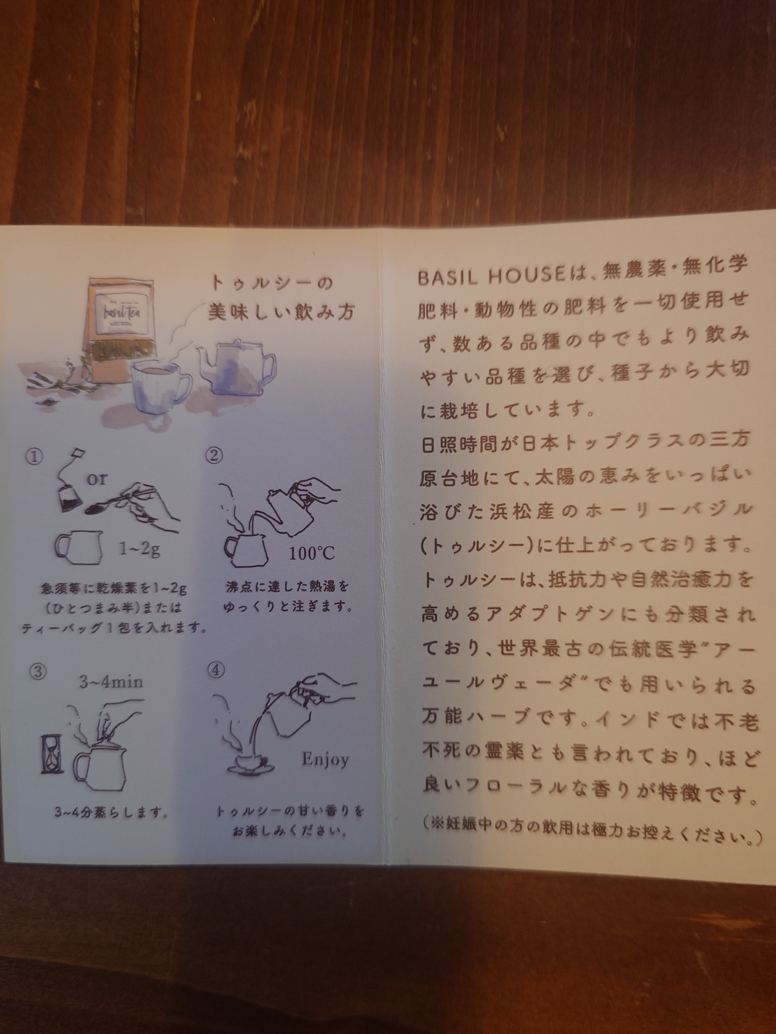 バジルハウスさんのホーリーバジルとライムバジルのブレンドティーのティーパック12包入り